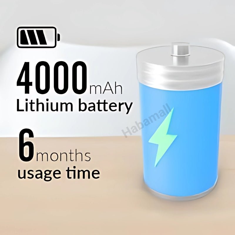 Powered by a 4000mAh rechargeable battery, lasting up to 6 months per charge.