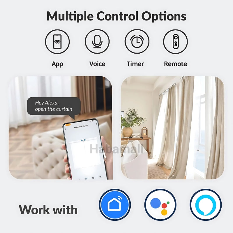 - Wi-Fi: Control your curtains anytime, anywhere via the app.